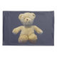 Um marrom macio bonito encheu o urso de ursinho em caixas azuis do travesseiro. Excelente a ir com os outros artigos do urso de ursinho para uma sala de criança.