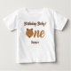 Uma camiseta de aniversário divertida para o seu bebê. A camisa do bebê tem a palavra "Um" em letras grandes, com uma ilustração do rosto do urso como a primeira letra da palavra e um esquema de cor castanho e branco. Simplesmente, personalize esta camisa, adicione-a ao seu carrinho, e feliz aniversário ao seu bebê maravilhoso! Urso Divertido Primeiro Aniversário Camisa de Bebê Design de Natal | ©Melissa Patton — Artista/Ilustrator