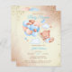 Busto de pelúcia do orçamento com balões castanhos e azuis e nuvens convites para chuveiros de bebês.