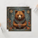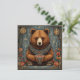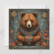Urso majestoso sentado calmamente, adorado com um colar lindamente detalhado. Ela segura uma tigela cheia de bagas vermelhas, cercada por decorações florais e vários símbolos no fundo. A trabalho de arte combina elementos da natureza com símbolos místicos, criando uma atmosfera cativa e serena.
