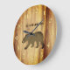 Silhueta de um urso negro em uma prancha russa de madeira. Família personalizável ou nome de alojamento. Estilo russo de chaleira de montanha.