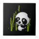 Que bela e adorável ilustração de um urso panda preto e branco sentado entre as pedras verdes de bambu em um pequeno bosque, parecendo feliz, amigável e amoroso. O fundo negro realmente faz essa pop panda pequena!