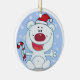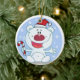 Um adorável urso polar em um boné vermelho e um sorriso grande seguram uma cana doce em um ornamento personalizável com fundo azul e flocos de neve!