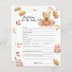Celebrar com esta festa de chá de fraldas do ursinho de outono! Ursinho de pelúcia bonitinho com uma abóbora de outono nas patas do outono. No verso do cartão estão as folhas do outono. Itens correspondentes disponíveis.