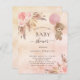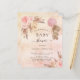 Para um chá de fraldas moderno estilo boho. Um fundo rosa dourado, rosado, rosado e roxo, com aspecto metálico. Decorado com ouro rosa e flores cor-de-rosa, rosas, grama-pampas e ursinha-peluche segurando um balão rosa. Personalize e adicione um nome e detalhes da parte.