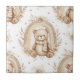 Azulejo Cerâmico - Padrão encantador de urso teddy boho com arco-íris neutros suaves, flores delicadas e estrelas espalhadas em tons de bege quente. Estética aconchegante e sonhadora com um toque moderno minimalista. Ideal para bebês, crianças pequenas, novos pais e amantes de berçários boho.
