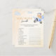 Mantenha os hóspedes entretidos com este lindo jogo de chá de fraldas de Espera do Word Scramble! Apresentando um doce design de aquarela de um ursinho voando através das nuvens, esta atividade imprimível convida os hóspedes a desembaraçarem palavras populares relacionadas ao bebê. Um jogo simples e divertido que combina com a sua coleção de Espera Antecipada de cheio — perfeito para uma comemoração neutra em termos de gênero, aventura ou temática celestial.