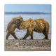 O filhote de urso pardo costeiro brincando com sua mãe na costa do riacho de Silver Salmon, no Lago Clark National Park, Alaska. O Silver Salmon Creek abriga um subconjunto de ursos locais, a maioria dos quais são mães com filhotes e juvenis, embora os machos maiores possam ser vistos durante a época de reprodução e outras vezes.