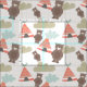 Tecido bonito e caprichoso apresenta várias empadas, nuvens padronizadas, e pequenos ursos marrons, excelente para crianças que amam o excelente ao ar livre.