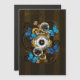 Composição do relógio de aço redondo com discagem numérica romana preta, decorado com engrenagens de ouro e latão, borboletas morfo azuis e lentes danificadas sobre fundo listrado castanho. Estilo Steampunk.