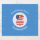 O rótulo do vinho contém um anjo vermelho de cabelos vestindo a bandeira dos Estados Unidos da América neste adesivo para decoração de presentes de Natal ou decoração do partido Chanucá. O Anjo da bandeira dos EUA é encontrado dentro a um círculo fractal branco de quadrados rabugentos. O fundo é azul, quadrados fractais. Adicione seu próprio texto ou personalize com um nome e o ano.