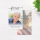 Keep the memory of a loved one close with this custom personalized prayer card featuring one cherished photo, the sentiment FOREVER IN OUR HEARTS, name and dates on the front and an editable heartfelt remembrance message, prayer or poem overlaid on an American flag photo or change to an image that represents your loved one best. With its simple yet elegant classic design and modern handwritten script, it makes a meaningful keepsake to share at a funeral, memorial service, visitation, wake or Celebration of Life and offers comfort and a lasting tribute for family and friends. Its small and portable size of 3.5x2" (wallet-sized) makes it convenient for loved ones to carry it with them as a reminder of your loved one’s life and spirit. Personalization makes each card unique.