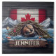 Um castor canadense constrói uma barragem em um rio, cercado por montanhas com capas de neve e uma paisagem canadense vibrante.