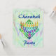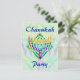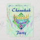 O menorah pintado colorido com verde abstrato modelou o fundo. Design de Chanukah. Convites feitos sob encomenda - apenas adicione sua própria informação nos espaços fornecidos.