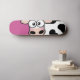 Pão de skate de vaca. Design apresenta uma embaraçosa vaca branca e preta em fundo rosa. Perfeito para patinadores de meninas. Design © Lisa Marie Robinson