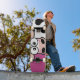 Vaca azul no skate rosa