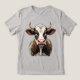 Uma ilustração bem-humorada de uma vaca com expressão facial peculiar e texto na testa.