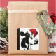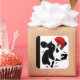 Uma bela etiqueta de presente de Vaca Negra e Branca com um chapéu festivo de Papai Noel Branco e Vermelho a fazer na cabeça. Personalize mais ou mais comprares como está.