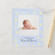 Anúncio de nascimento de um bebê com fundo azul e estrelas cintilantes, com uma rima de berçário favorita "A vaca saltou sobre a lua" Este modelo duplo de lado é excelente para anúncios de meninos e meninas, e mostra um posicionamento fotográfico na frente, e uma vaca branca com data e estatísticas na parte de trás. Esta design apresenta um anúncio de bebê com fotografia neutra do gênero chá de fraldas com um excelente simples de bebê recém-nascido para menino ou menina, uma tipografia fotocaligráfica minimalista, com data e estatísticas neutras do gênero, uma estrela branca e engraçada moderna, com uma vaca pulando sobre a lua, um roteiro clássico de rima de berçário, música fazenda de vaca, fotografia nascimento de bebê, estrelas trendy na moda