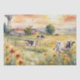 Na cena tranquila da aquarela, suaves tons de rosa e laranja se misturam perfeitamente à medida que o sol sobe sobre um campo sereno pontilhado de flores silvestres.