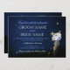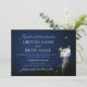 Um convite rústico do casamento que caracteriza vaga-lume com um buquê do frasco de pedreiro em um campo