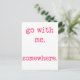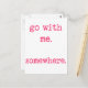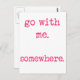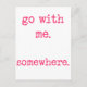NewParkLane - Cartão postal, com a citação romântica "Vai comigo. Em algum lugar.", em uma fonte rosa-quente, máquina de escrever.
