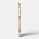 Bonito padrão repetido de flores cor de laranja e amarela, semelhantes a margarida ou margarida, sobre fundo com padrão mosaico. Esquema de cores mutadas que lembra os anos 70. Adoraria ver esta design na natureza; coloque-me no Instagram @parry_vegan