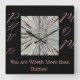 O Relógio de Parede Quadrado "Vale Mais do que Rubies" é uma bela decoração de parede para o seu espaço vivo. É um presente perfeito para cada mãe. Ela apreciará enquanto olha para as palavras confortantes que a tranquilizam do seu amor e valor para ela. Obrigados para colocar seu pedido e apoiar a loja "Pelo Amor da Beleza". Significa muito, obrigado!
