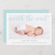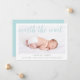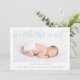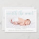 Bem-vindos ao seu doce milagre com este anúncio de nascimento de fotografias. Apresentando uma foto com a mensagem "Worth the Wait" em azul, com o nome do bebê e as estatísticas na cinza. Também permite uma foto atrás.