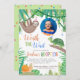 Celebre a adoção do seu filho com estes convites lentos de tema animal "que valem a pena esperar"! Adicione a foto do seu filho para torná-la pessoal. Com adorável preguiça pintada à mão, tartaruga e caracol pendurados na selva entre flores tropicais coloridas.