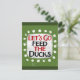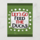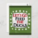 "Vamos dar comida aos patos" é um design de texto fofo com uma forma de destaque branca rodeada por pontos caprichosos texturizados brancos.
