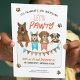 É hora de deixar os bons tempos rolar e celebrar um dia especial com uma Festa de aniversário de Cachorros para Crianças! Ou Cachorros! Prepare os convidados para um dia inesquecível de amor e diversão de filhotes para o seu pequeno com estes adoráveis convites ilustrados de aniversário. Este convite de aniversário apresenta bonitinhos cãozinhos de desenho animado e texto divertido e ousado "Vamos Pawty!" para que todos fiquem animados pelo grande dia. Perfeito para festas ao ar livre e festas de quintal, este convite de aniversário neutro em termos de gênero é adequado tanto a rapazes e raparigas como a filhotes! A ilustração apresenta um German shepherd, Corgi, Ouro Retriever, e um Touro Cachorro segurando uma faixa festiva e assina em laranja e azul com detalhes partidários prontos para personalização! Jogue uma festa ao ar livre com espaço para correr e brincar e tenha uma celebração de excelente de cachorro! Os suprimentos de festas de cães e decorações de filhotes estão disponíveis no meu compro. Os downloads digitais estão disponíveis para convites personalizados imprimíveis!