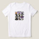 Designs de festas de Halloween apresentam fantasmas em fantasias de Halloween. Texto personalizado em roxo e preto.