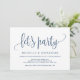 Este convite temático com design de caligrafia moderna (vamos festejar) é perfeito para o anúncio/celebração do seu casamento às pressas. Adicione seus detalhes em fonte/letreiro azul-marinho correspondente.