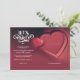Vamos Festejar, Convite de Casamento Dois Corações pela Multiform apresenta dois corações tridimensionais em negrito em um fundo vermelho radiante. Este design é ideal para quem procura um design moderno, não tradicional e atraente que chama a atenção.