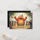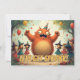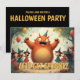 Ilustração lúdica do Dia das Bruxas com um monstro laranja engraçado, crianças em fantasias, balões e confete. Ideal para comemorações assustadoras, mas divertidas, festas infantis, decorações ou projetos criativos de Halloween com humor.