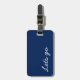 Esta etiqueta de bagagem azul do marinho diz "Vamos Ir" na frente e tem as suas informações de contato personalizadas na parte de trás. A cor azul pode ser alterada para a sua cor preferida.