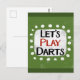 "Vamos Jogar Dardos" é um design de texto fofo com uma forma de destaque branca cercada por pontos caprichosos texturizados em branco.