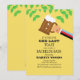 Um design em estilo de desenho animado mostrando uma mão levantando uma caneca de cerveja. O fundo amarelo tem um dossel de folhas verdes.