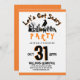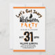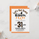 Legal ilustração moderna e criativa de halloween com corvo preto. O texto é personalizável, incluindo o Vamos ficar assustado. Preto branco com sotaques de listras laranja.