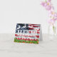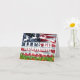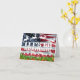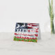 VAMOS VÁ BRANDON! [Font 3] Cartão de Natal Stars & Stripes, com sagrado e bagas de Natal, e renas voadoras. Papais noeis do vamos Go! Feliz Natal [editável] e VAMOS GO BRANDON no dentro do cartão. Uma maneira hilária de celebrar a estação festiva. Muito engraçado. Este cartão ficará orgulhoso em qualquer casa nesta temporada de Férias.