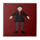 Este incrível azulejo apresenta uma imagem de arte digital de um vampiro de Halloween assustador, mas fofo. O vampiro tem cabelos pretos pontiagudos, camisa vermelha e jaqueta preta com botões vermelhos de sangue. Ele tem um sorriso assustador e longas presas brancas. Ele também tem unhas amarelas, meias roxas e calçados pretos com fivelas de ouro. Seus braços estão abertos te acolhendo por um mau.