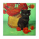 Azulejo com um gatinho preto no estilo de Van Gogh! Um gatinho bonito se senta ao lado de um vaso com flores vermelhas. Um muro verde e um chão dão uma ambição primavera. Um presente fantástico para amantes de gatos e colecionadores de arte holandeses!