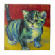 Azulejo com um gato de mesa no estilo de Van Gogh! Este doce gatinho se posiciona adoravelmente num chão de madeira contra paredes vermelhas e uma janela. Um presente incrível para amantes de gatos e colecionadores de arte holandeses!
