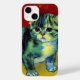 capas de iphone com um gato de mesa no estilo de Van Gogh! Este doce gatinho se posiciona adoravelmente num chão de madeira contra paredes vermelhas e uma janela. Um presente incrível para amantes de gatos e colecionadores de arte holandeses!