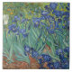 Este belo produto é inspirado pelos irlandeses pintados por Vincent van Gogh em 1889. A imagem apresenta riscas azuis com caules verdes e folhas com pontas pontiagudas plantadas na terra vermelha-marrom.