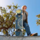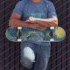 Andar de skate com a imagem da Noite Estrelada de Vincent Van Gogh.