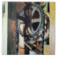 Projetos de Susan -- Imagem de uma corrente de transmissão e engrenagem de coroa em um moinho de grãos. Eu gostei das formas geométricas da engrenagem redonda e dos retângulos de madeira e da sombra interessante da engrenagem.