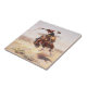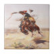 O vaqueiro ocidental do vintage que monta um cavalo bucking imprimiu no azulejo