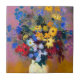 Azulejo com a pintura de Odilon Redon White Vase com Flores (1916). Uma bela disposição de flores azuis, vermelhas, brancas e roxas. Um presente sincero para os colecionadores de arte franceses!